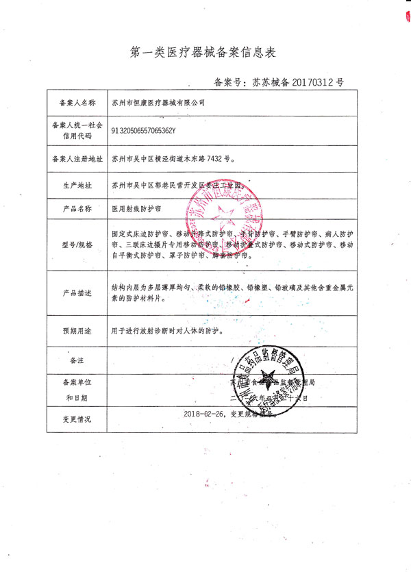 醫(yī)用射線防護簾第一類醫(yī)療備案介紹